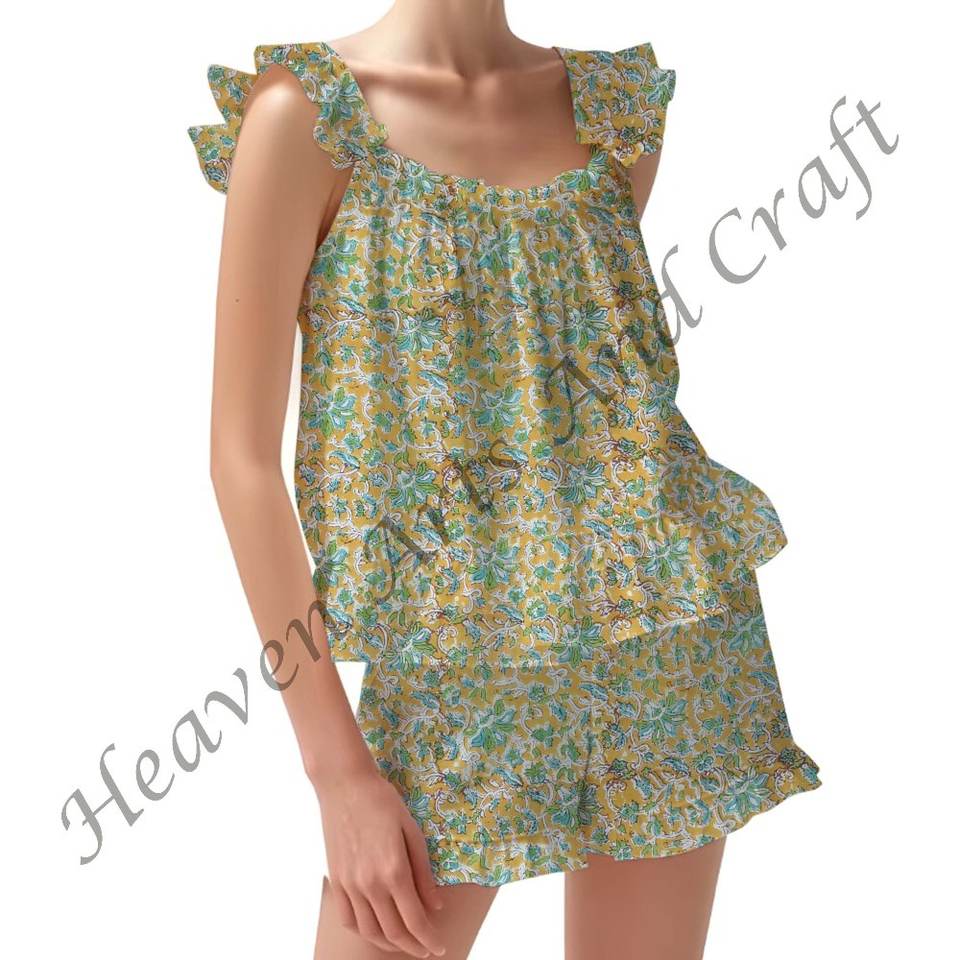 Product name:100% Cotton Printed Ruffle Pajama Set