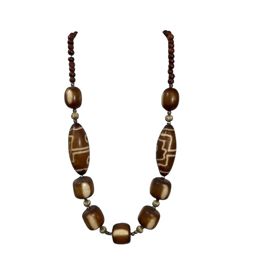 Show Hill Himalayan Handicraft Fine Art Elegant Huge DzI Beads Single Strand Necklace - Mix of Beads Art Pendant Necklace