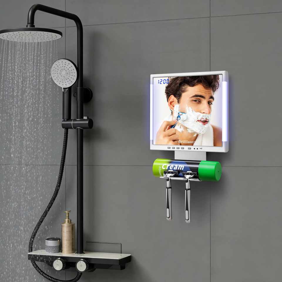 Shower Bath Room Mirror Radio with Wireless Speaker and LED Clock Light