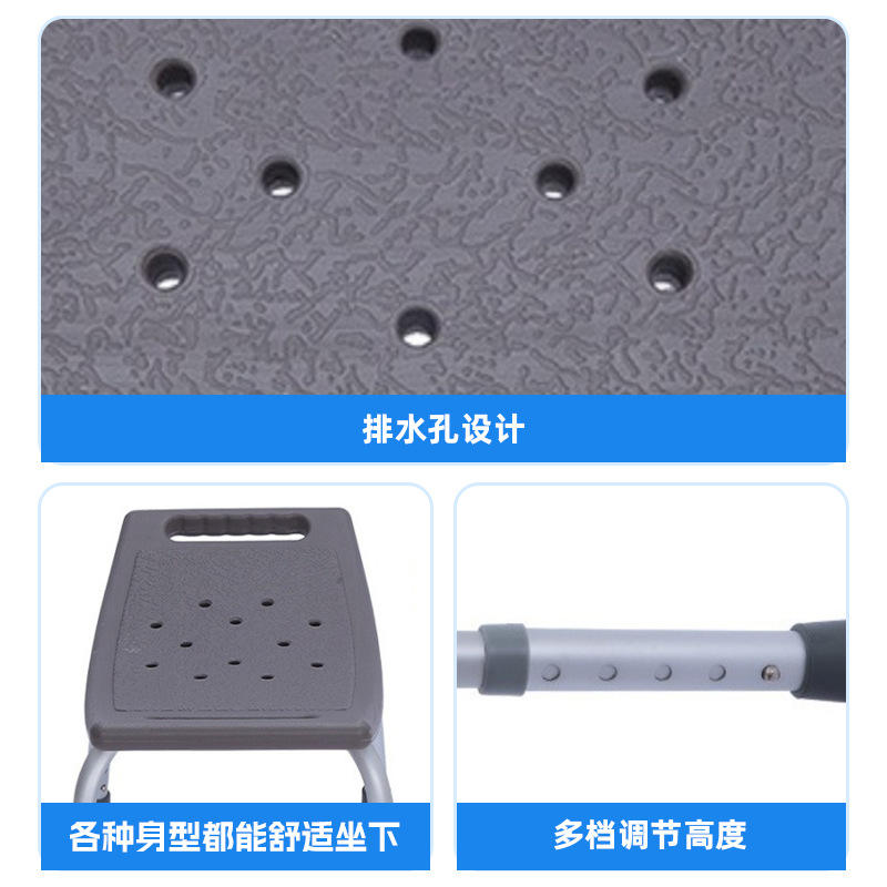 Shower Chair Height Adjustable Non Slip PE Seat Stainless Steel Legs Bathroom Stool For Elderly And Pregnant Women