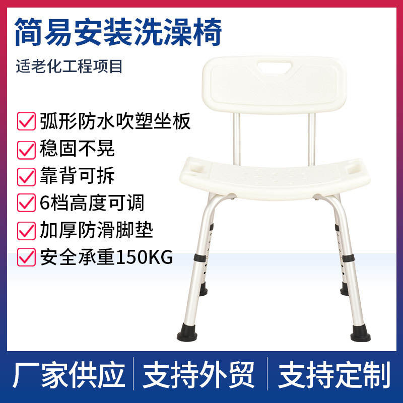 Shower Chair With Backrest 6 Speed Adjustable Height For Elderly And Pregnant Women Bath Stool Bathroom Use