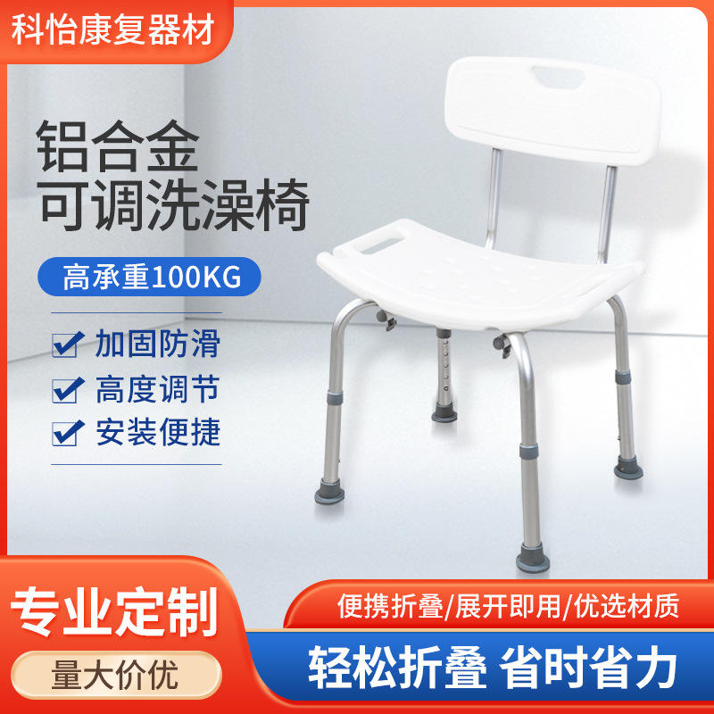 Shower Chair With Backrest Adjustable Height White Non Slip Bathroom Safety Equipment For Elderly Disabled Pregnant Women