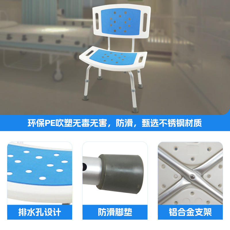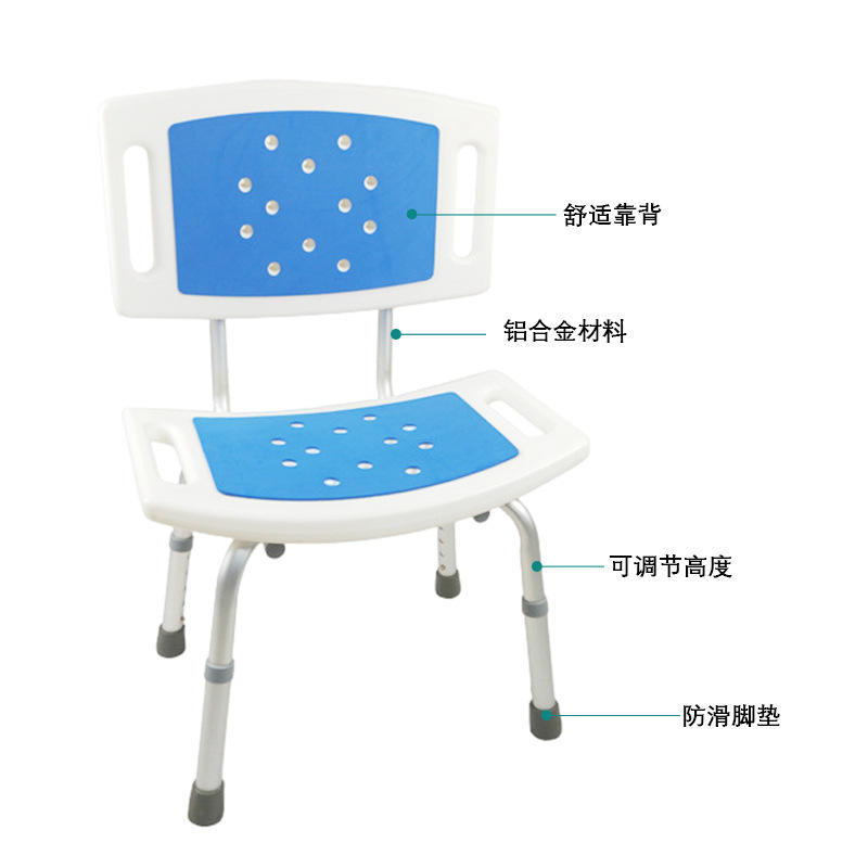 Shower Chair With Backrest Height Adjustable Aluminum Alloy Non Slip Foot Pad For Elderly Pregnant Women