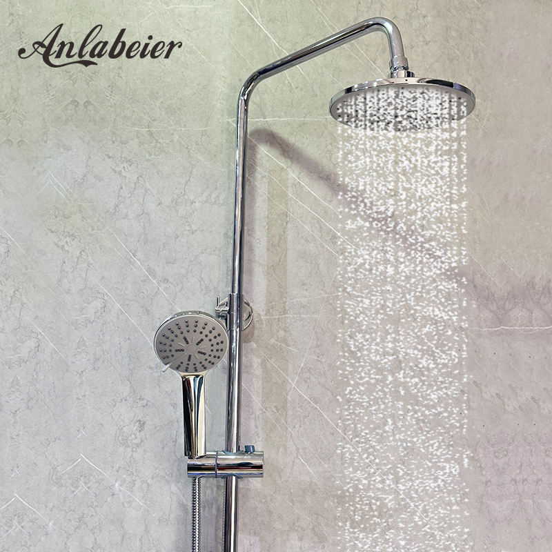 Chrome Polished Single Handle Shower Head Spray Set with Lift Rod for Commercial Hotel Bathroom Modern Design