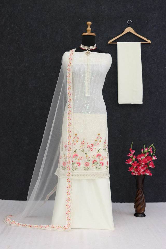 Shree Indian Exports Beautiful Design Bollywood Inspired Three Piece Embroidered Linen Salwar Kameez Same Dupatta Set for Party
