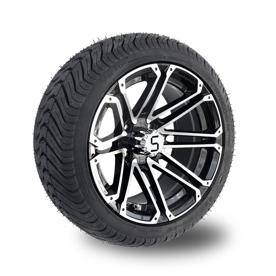 Shu-Ran 14'' Golf Cart Machined/Gloss Black Wheels and Golff Cart Tire with 'S' Center Cap