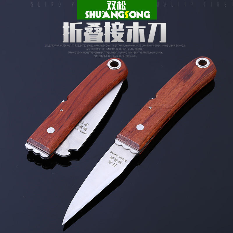 Shuangsong Folding Grafting Knife 100mm Straight Edge High Carbon Steel Blade Brown Handle Garden Tool