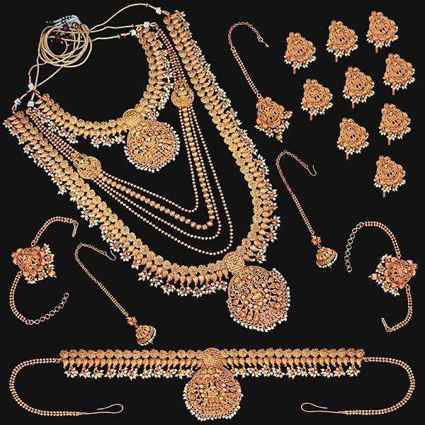 Shubham FBK0051 Pota Stone Copper Bridal Jewellery Set Gold Plated Zircon Diamond for Wedding Party Gift White Rose Gold
