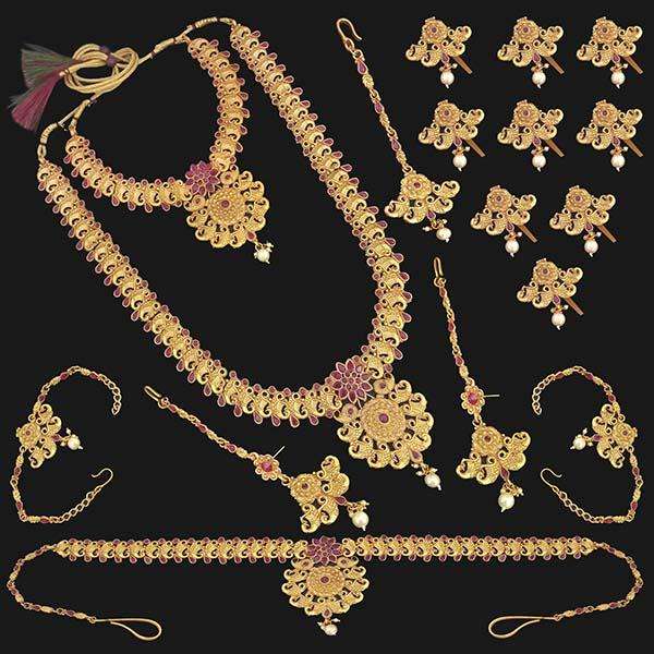 Shubham Fine Bridal Jewelry Set Copper Stone Zircon and Pearl for Weddings Parties and Gifts-Model FBK0106