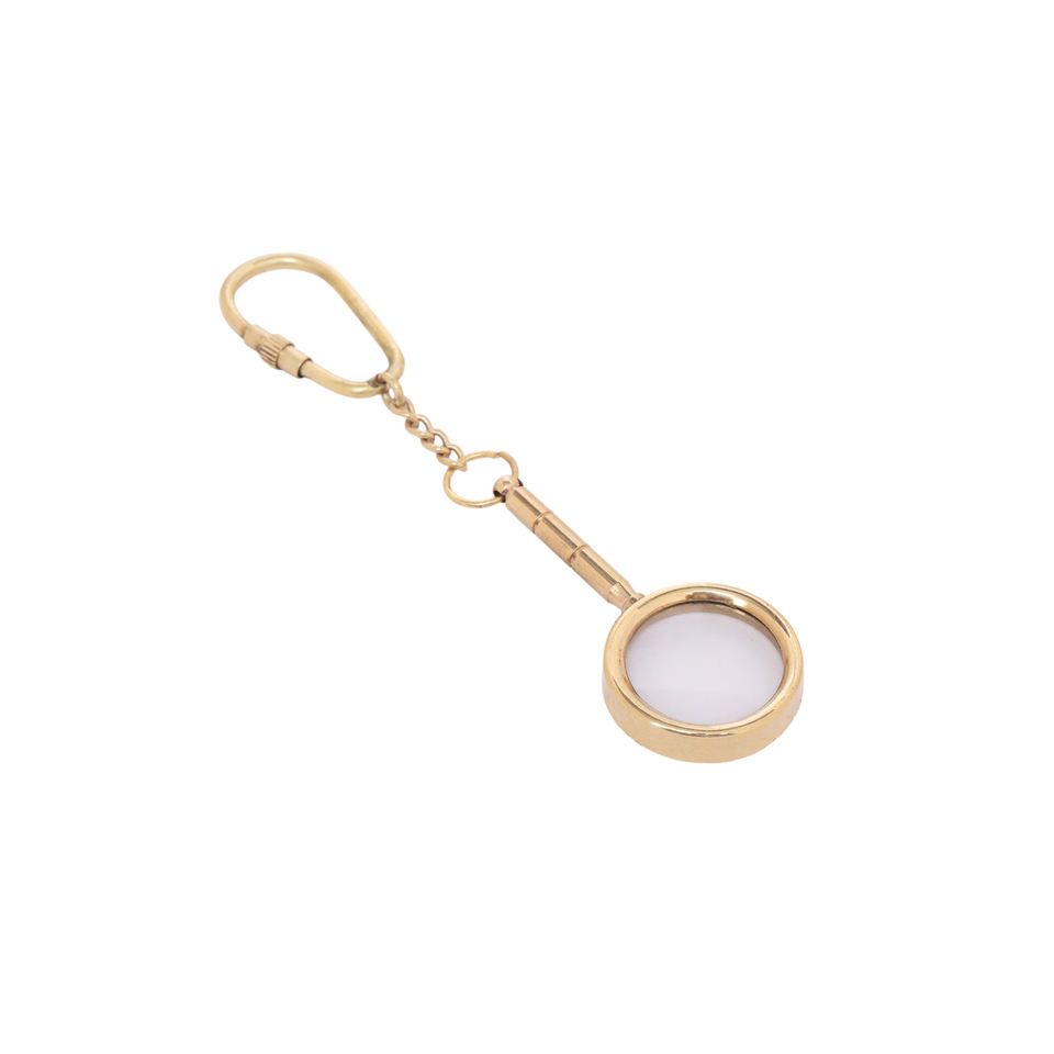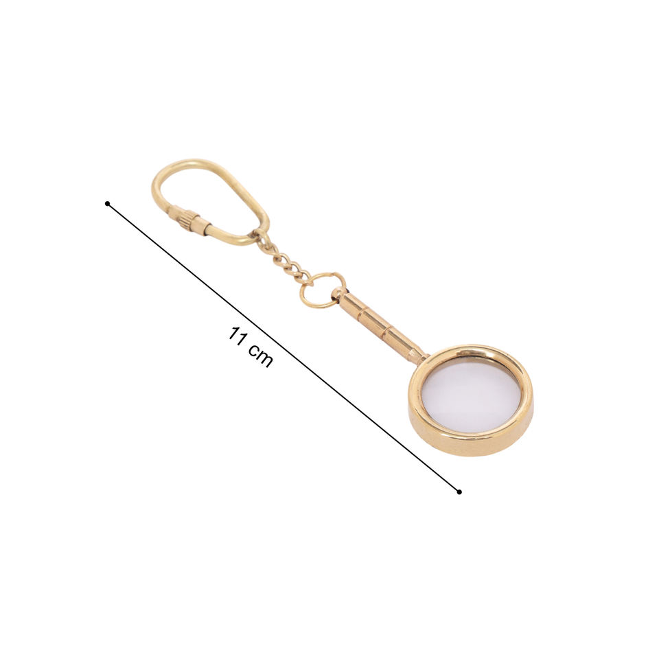 Shubham Handmade Nautical Solid Brass Magnifying Glass Keyring, Vintage Style Keychain with Magnifier Lens, 11 cm