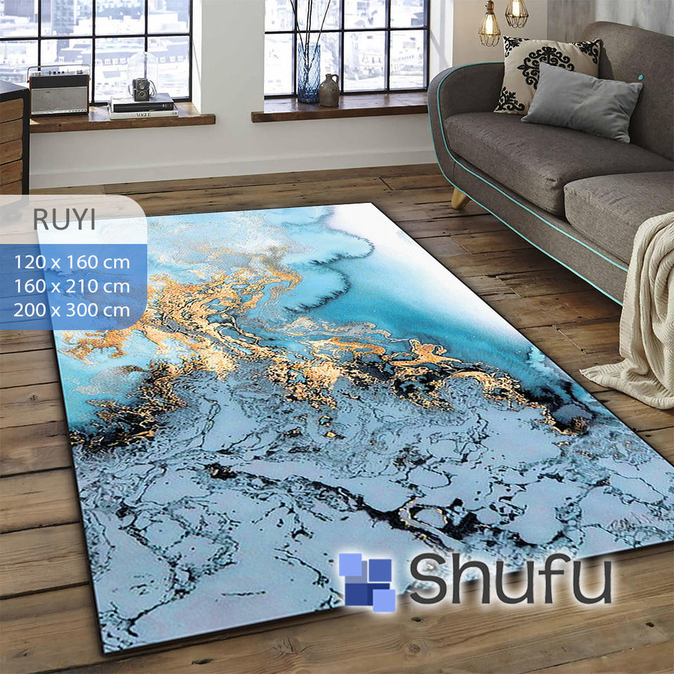 Shufu Modern Flannel Carpet Non-Slip Thermo Plastic Rubber Anti-Allergic Machine Washable Medium Pile Abstract Area Rugs Sets