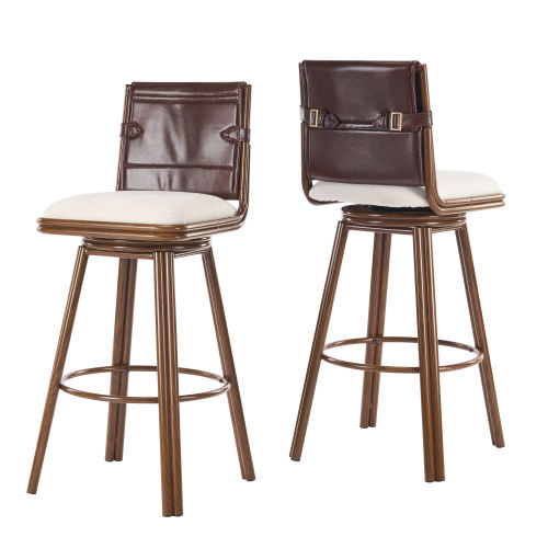 Sibyl Indoor Convertible Dining Paper Rope Modern Adjustable Lightweight Swivel Bar Stool Legs Walnut Finish Beige Upholstery