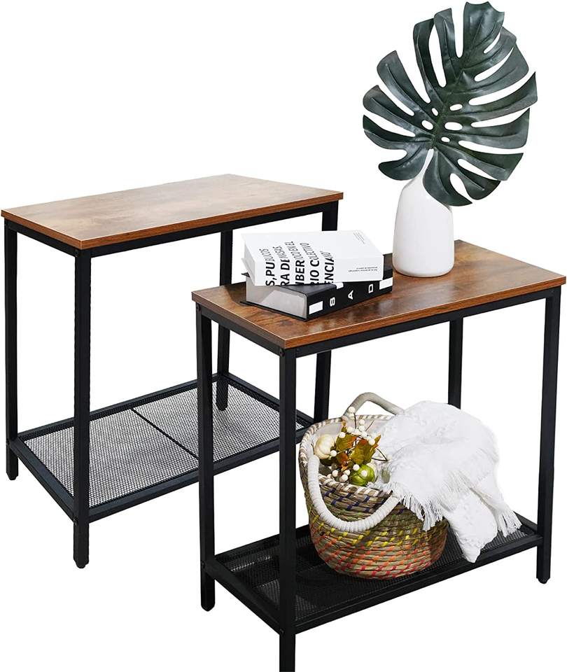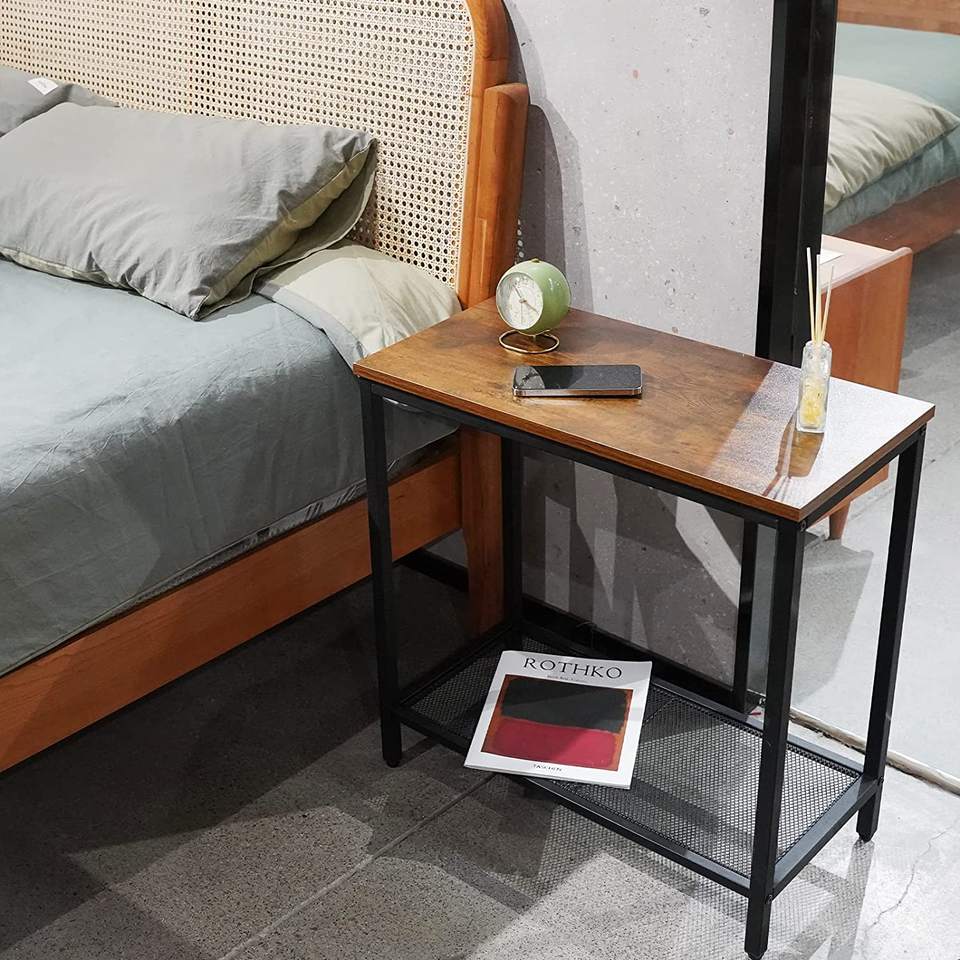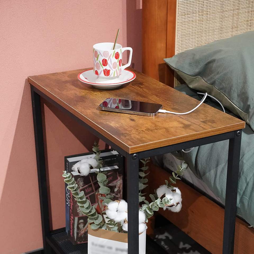 Side Table 2 Sets 2-Tier Narrow End Table Long Tall Side Table Narrow Desk Nightstand for Bedroom Living Room Shoe Rack