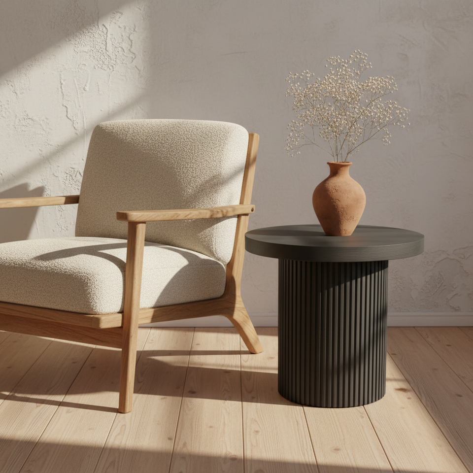 Modern Coffee Table Side End Table One Pillar Leg Light Brown Color Luxury Dynamic Color Durable Rubberwood Oak Materials 1 Year