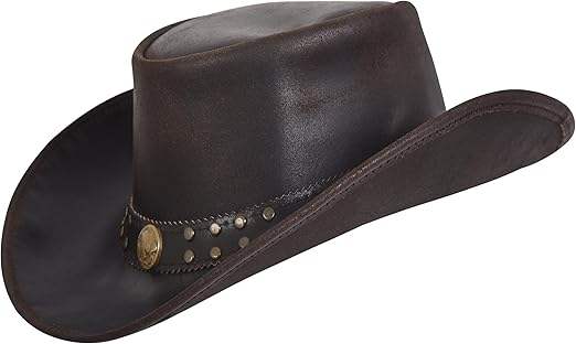 Side Winder Australian Cowboy Leather Hat Unisex Adult for Men and Women Shapeable Outback Western Style Wide Brim Leather Hats
