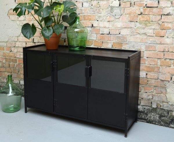 Black Steel Sideboard Glass Doors Modern Industrial Design Convertible Furniture for Dining Bedroom Hotel Living Room Kitchen