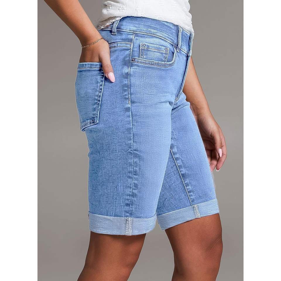 Sidefeel Women's High Waisted Stretchy Shorts Casual Vintage Straight Cut Bermuda Folded Hem Skinny Sexy Summer Denim Shorts