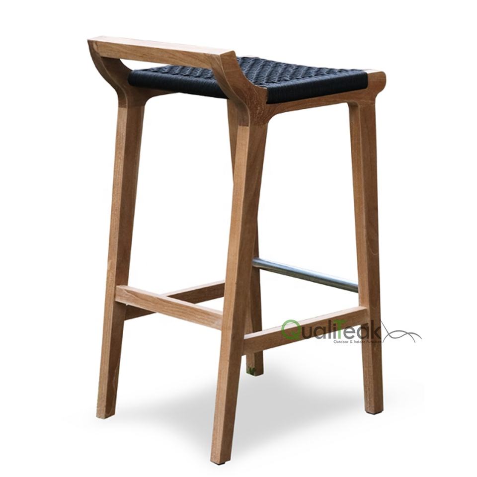 Sidi Modern Teak Bar Stool with Rope Weaving Eco-Friendly for Outdoor Restaurants and Hotels