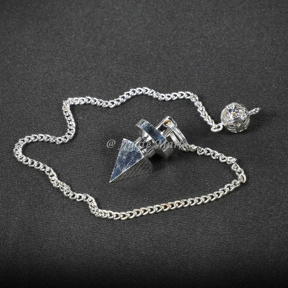 Sier Stylish Chakra Love Brass Pendulum Cone Crystal Agate Healing Divination Supplies Feng Shui Carved Technique Ball Gemstone