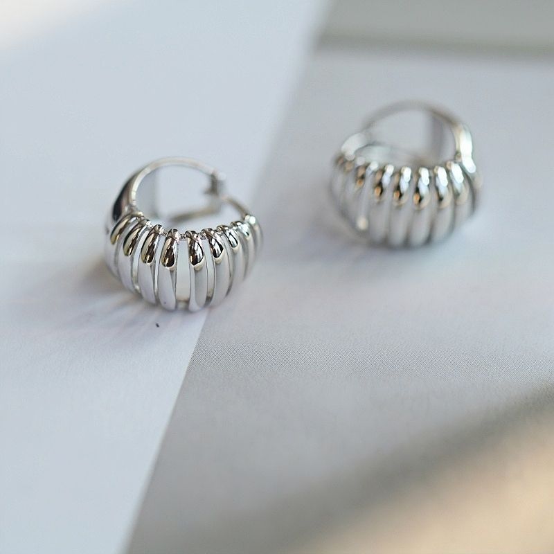 Sier Women's Trendy Round Stud Earrings Natural Shine Fine Hoop No Extra Decorative Accessories for Gifts