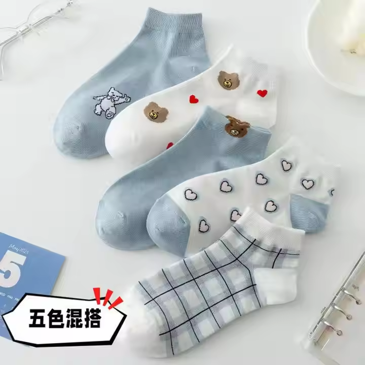 Sifot Wholesale Custom Cotton Cartoon Cute Pink Color Series Non Slip Flat Women Ankle Socks Set Breathable