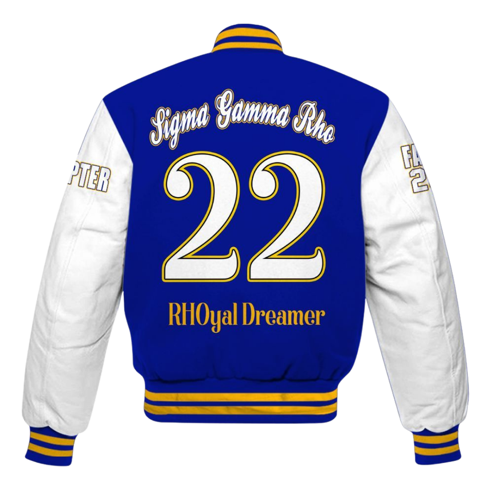 Sigma Gamma Rho 1922 Classic Varsity Letterman Jacket Elite SGRho Greek Life Royal Blue Gold Poodle Jacket