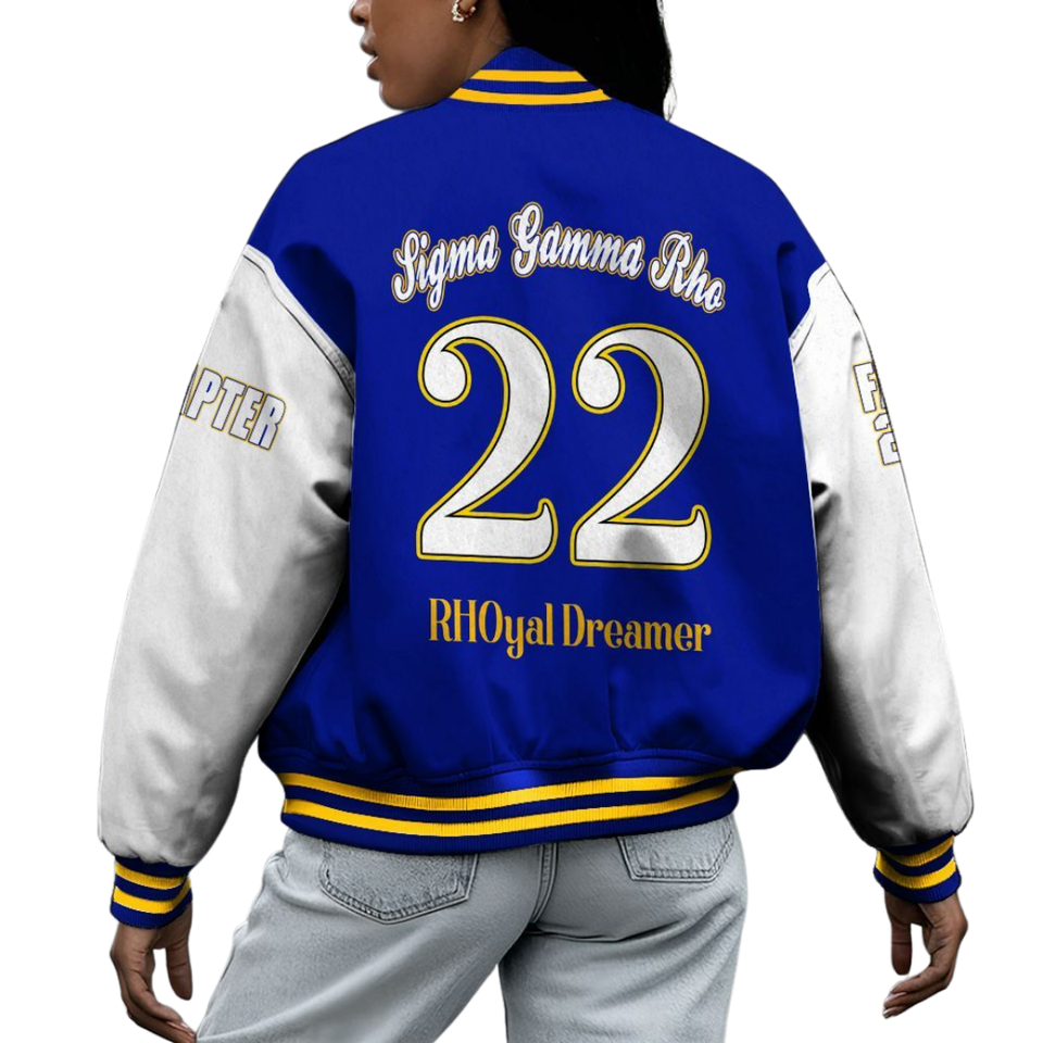 Sigma Gamma Rho 1922 Classic Varsity Letterman Jacket Elite SGRho Greek Life Royal Blue Gold Poodle Jacket