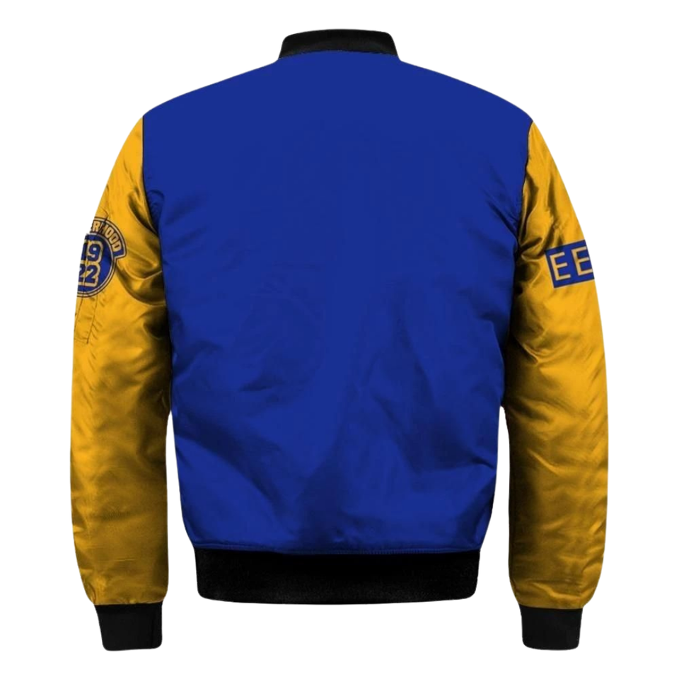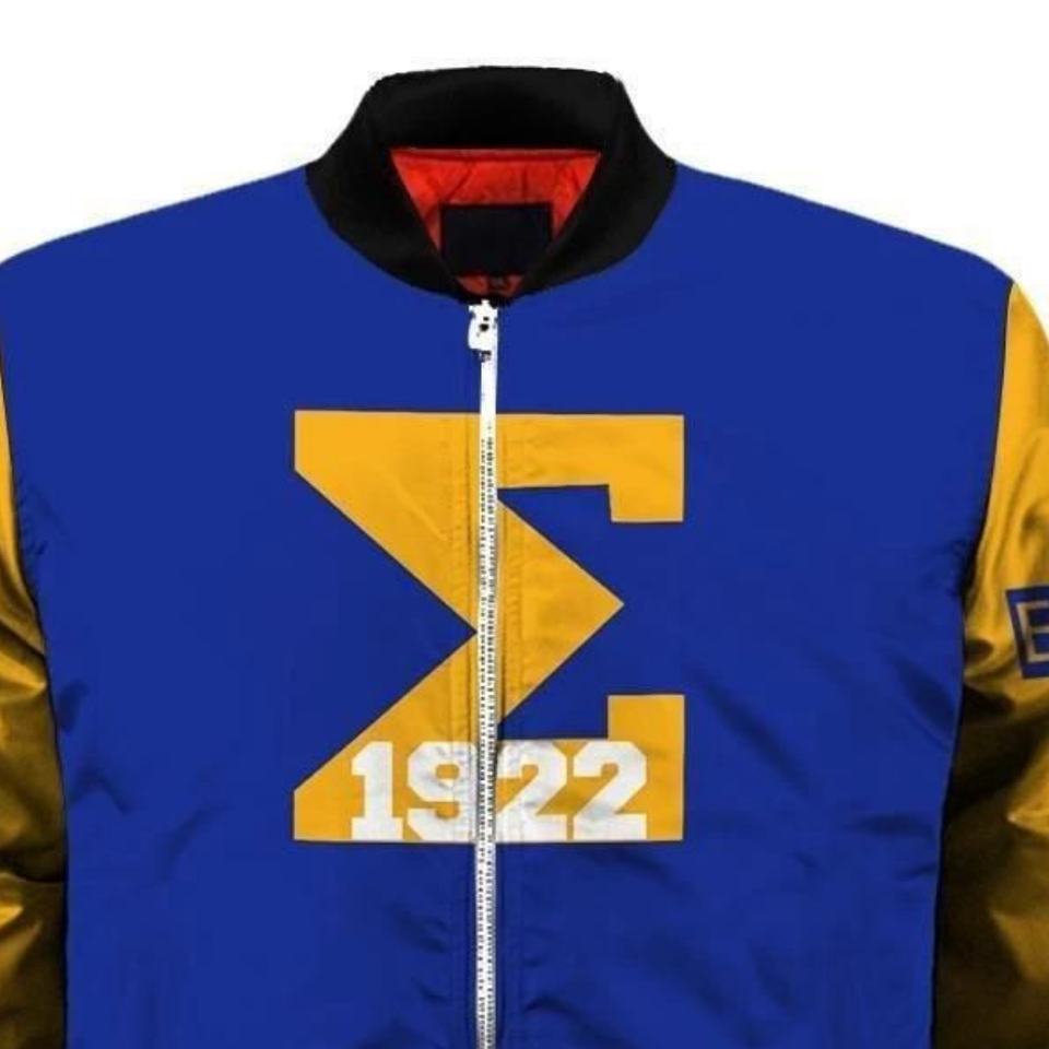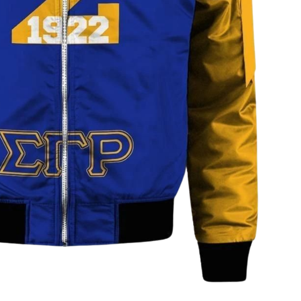 Sigma Gamma Rho SGRho Blue Gold Satin Varsity Jacket 1922 Embroidered Greek Sorority Womens Outerwear