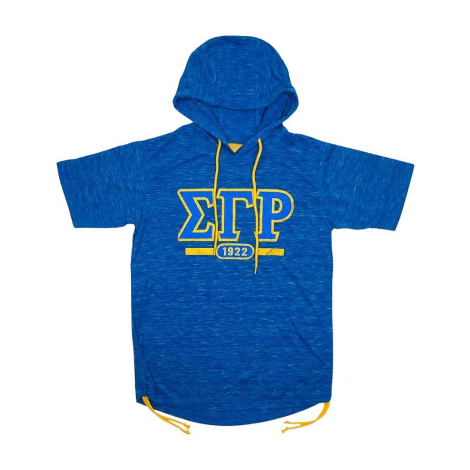 Sigma Gamma Rho SGRho Hood Tee Royal Blue 80 Polyester 20 Rayon Greek Letters Print Sorority Greek Life Hoodie T Shirt