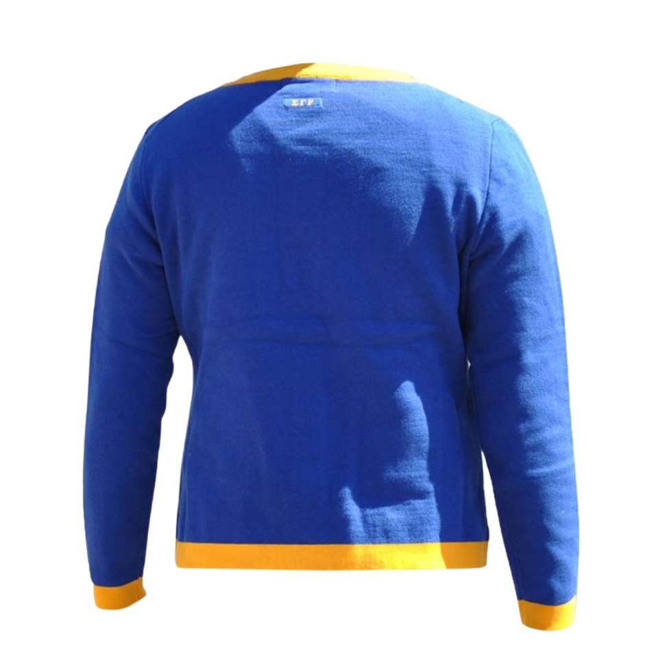 Sigma Gamma Rho SGRho Knit Cardigan Royal Blue Embroidered Crest Sorority Greek Life Classic Button Up Greek Apparel