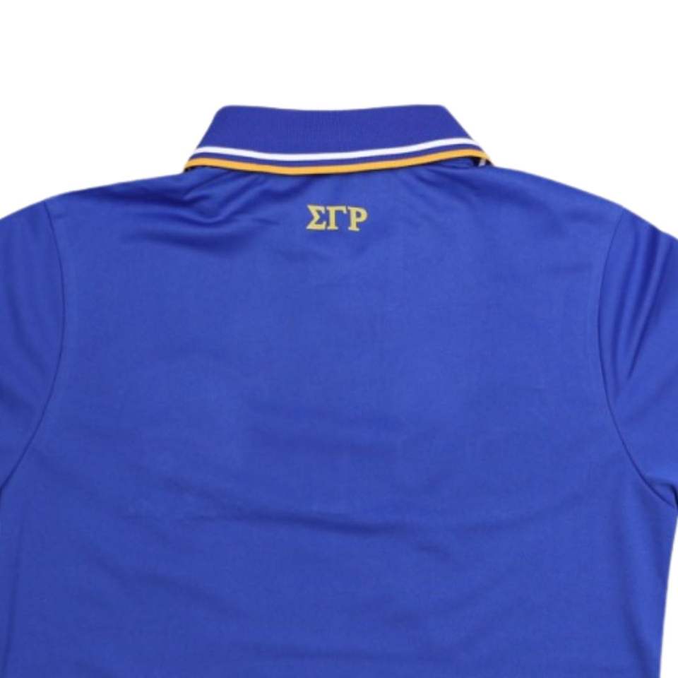 Sigma Gamma Rho SGRho Polo Shirt Royal Blue 100 Polyester Embroidered Crest Greek Letters Sorority Greek Life Apparel