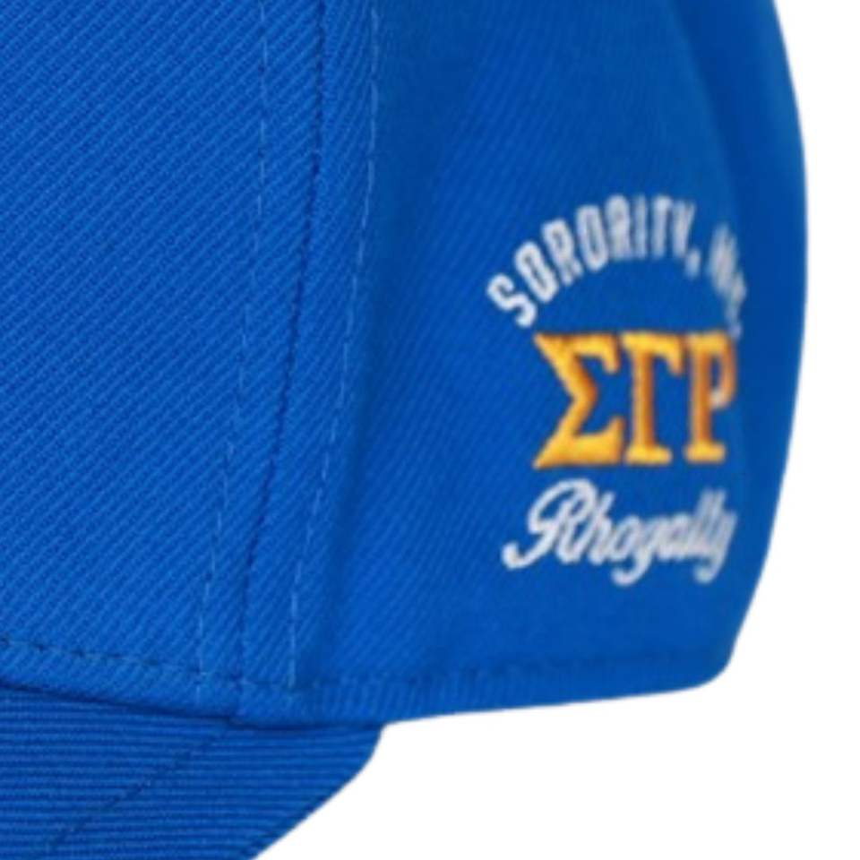 Sigma Gamma Rho SGRho Printed Bill Cap Royal Blue 20 Wool 80 Acrylic Crest Embroidered Front Back Adjustable Greek Hat