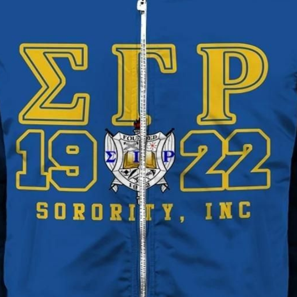 Sigma Gamma Rho SGRho Satin Jacket Greek 1922 Royal Blue Gold Bomber Varsity Sorority Womens Apparel