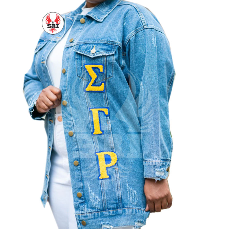 Sigma Gamma Rho Sorority Embroidery Women Denim Jeans Jacket | SGR Sorority Embroidered Women Distressed Denim Jean Jackets