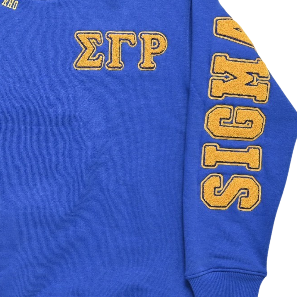 Sigma Gamma Rho Sorority Winter Chenille Blue Sweatshirt Womens Greek Letters Front Badge Crewneck Pullover Cozy Customizable