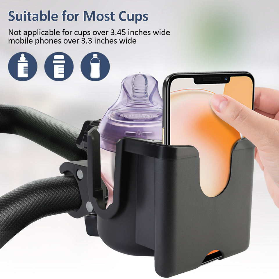 Silicone Cup Holder with Phone & Bottle Holder Rotatable with Clip Accessory Stroller Bike Wheelchair Scooter Walkers