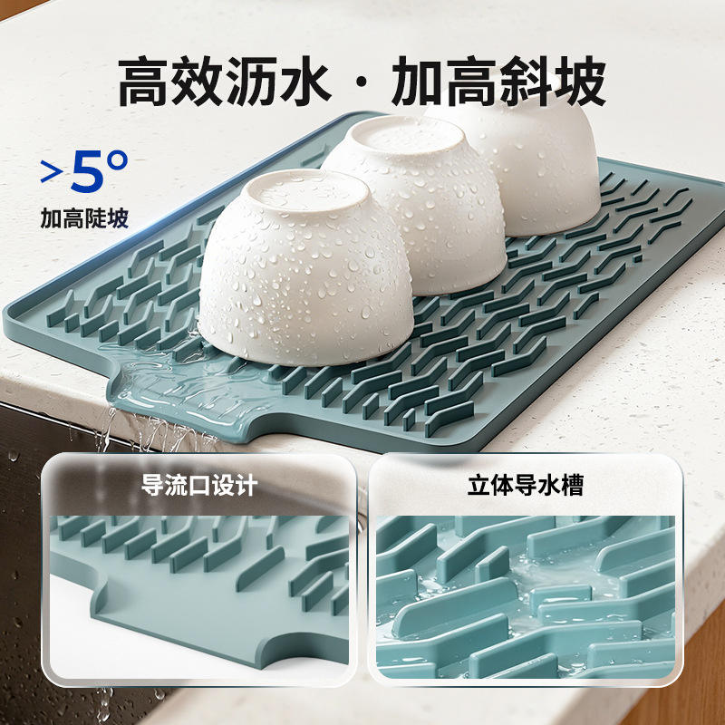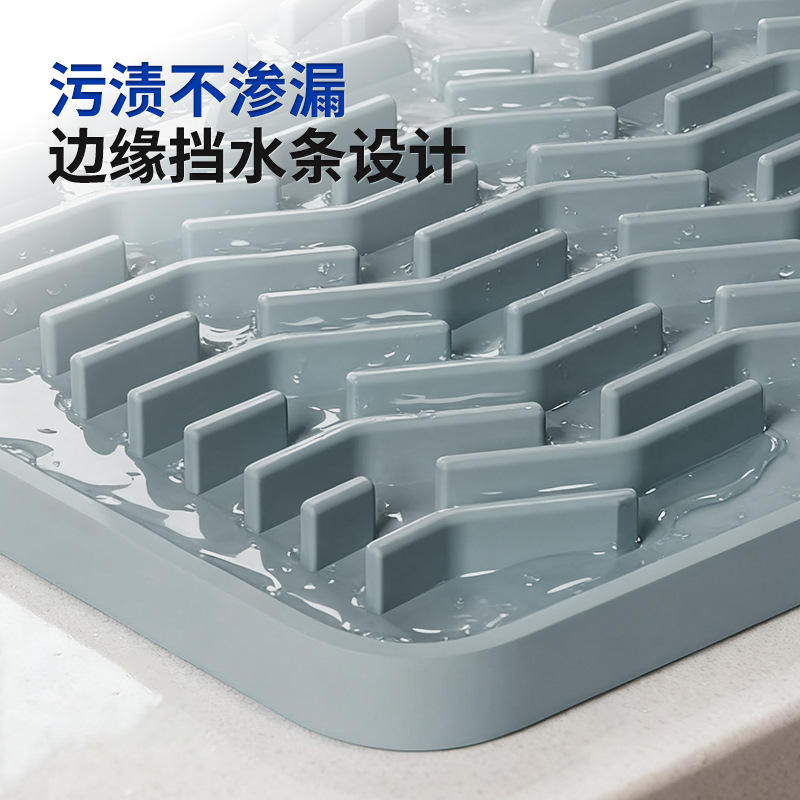 Silicone Drain Mat Rectangle Geometric Pattern High Slope Design Kitchen Countertop Drying Rack Water Flow Channel