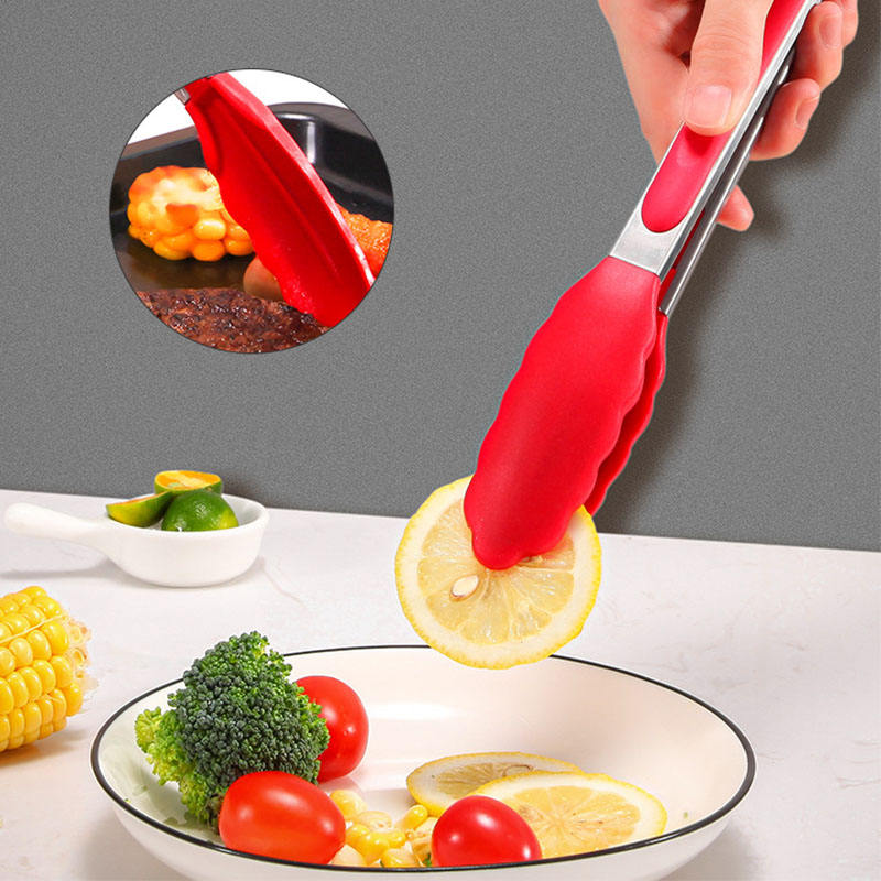 Silicone Food Tong Stainless Steel Kitchen Tongs Silicone Non-slip Cooking Clip Clamp BBQ Salad Tools Grill Kitchen Accessories