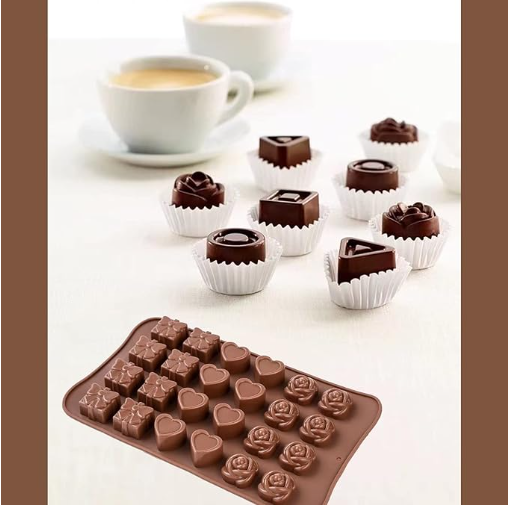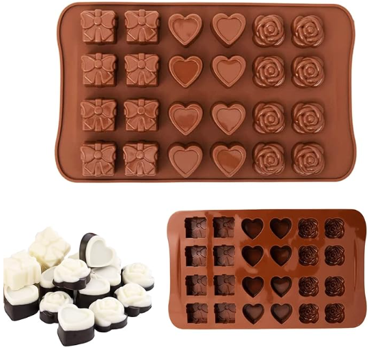 Silicone Heart Shaped Flower Ice Cube Jelly Hard Candy Mold Tray-2 Packs for Baking Chocolates Valentine's Day Christmas