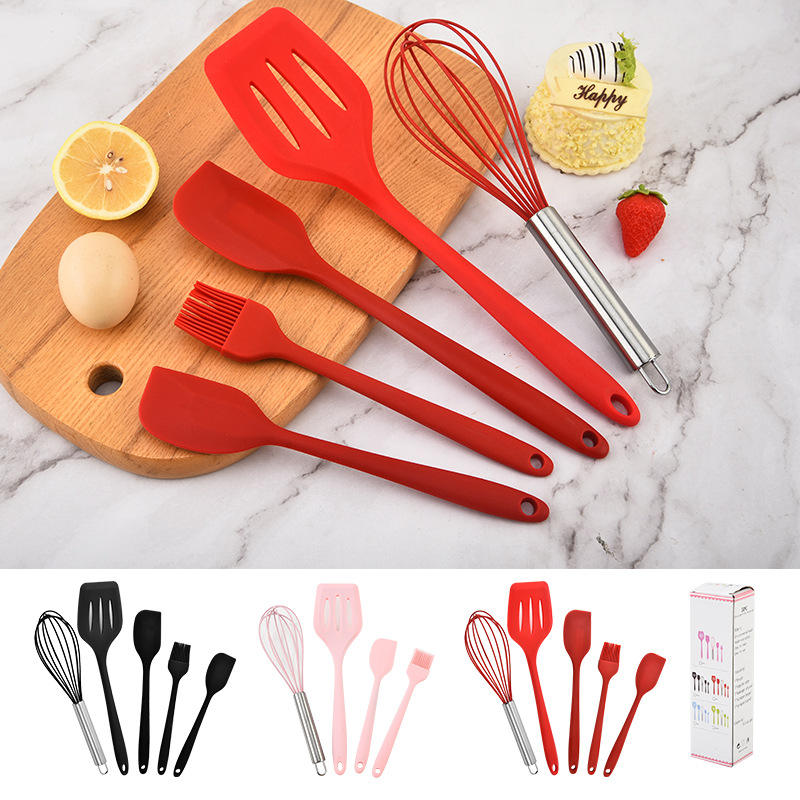 Silicone Kitchen Tools 5 Piece Set Reusable Baking Utensils Food Grade Spatula Oil Brush Whisk For Cooking