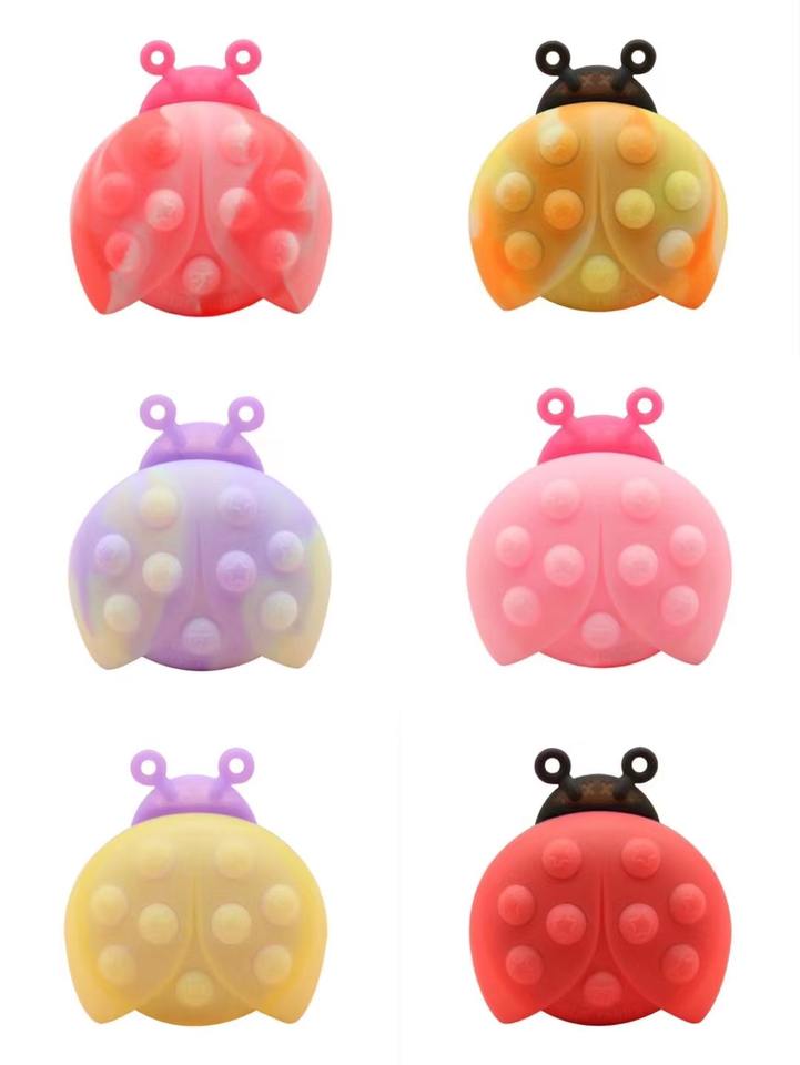 Silicone Ladybird Key Ring Mini Squishy Stress Ball Anti-Anxiety Push Bubble Rainbow Popper Sensory Fidget Toy for Stress Relief