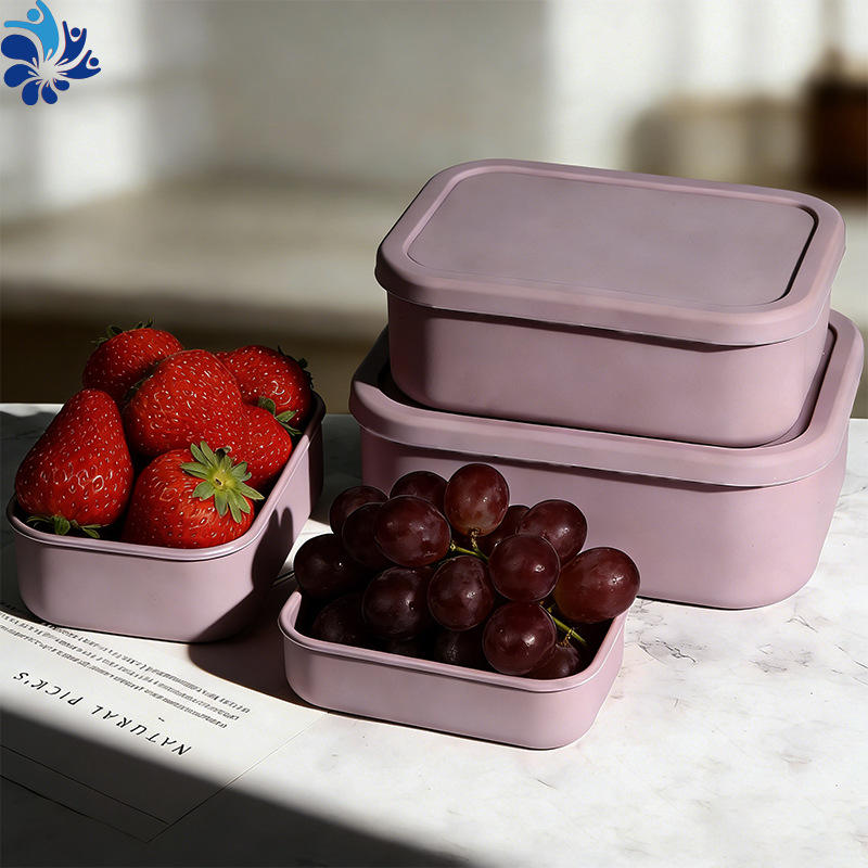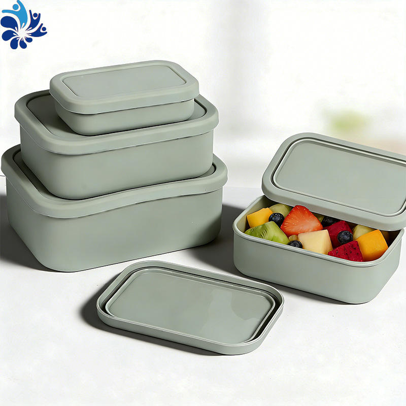 Silicone Lunch Box Rectangle With Lid Food Storage Container Microwave Safe For School Meal Prep