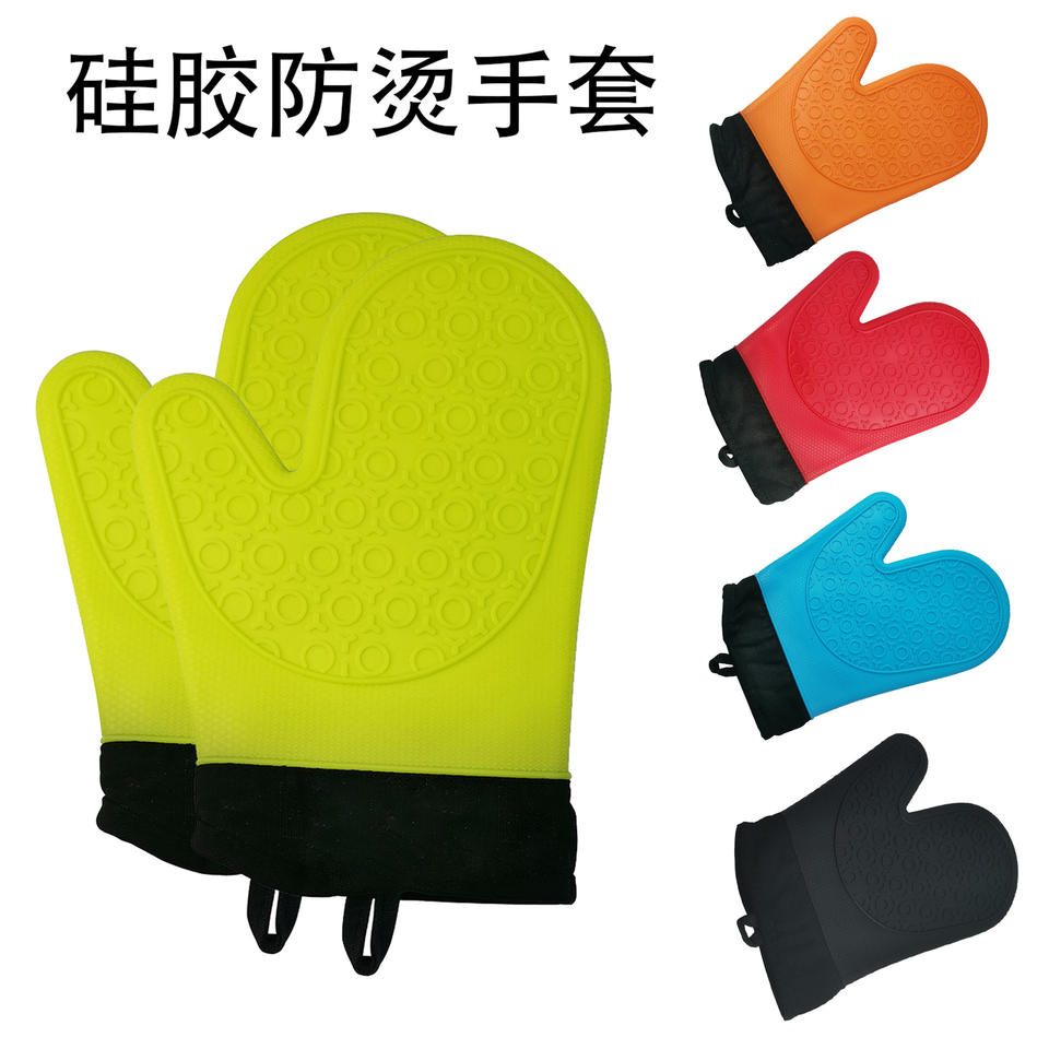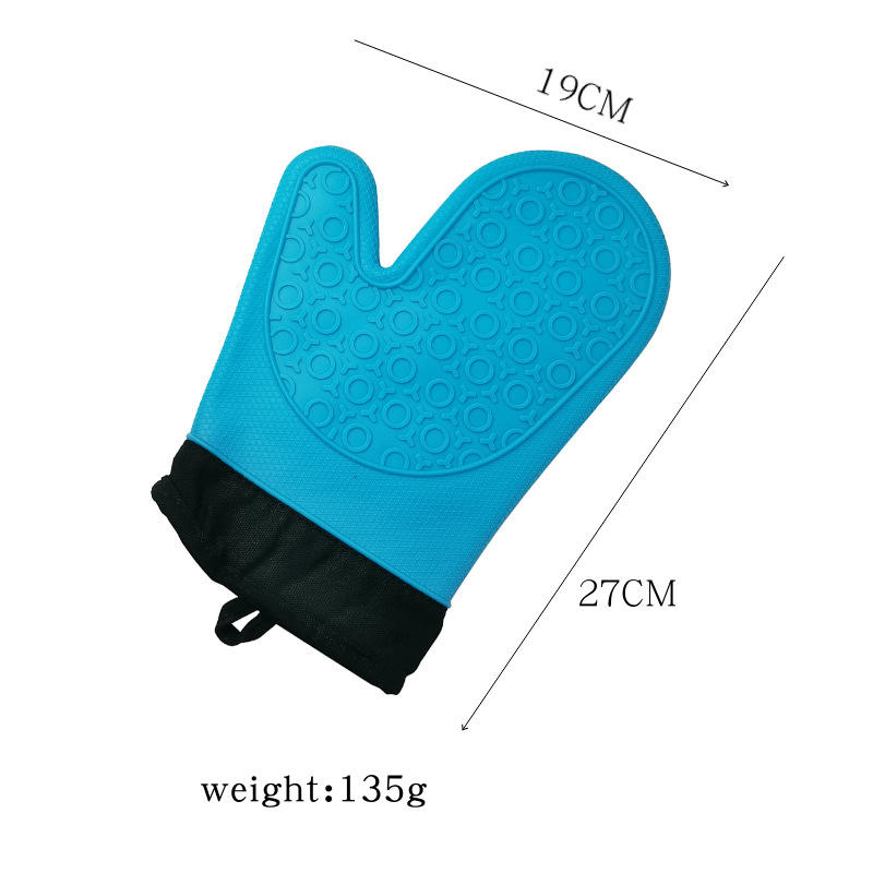 Silicone Oven Mitt Heat Resistant Blue 27cm Cotton Lining Thickened Gloves For Kitchen Use