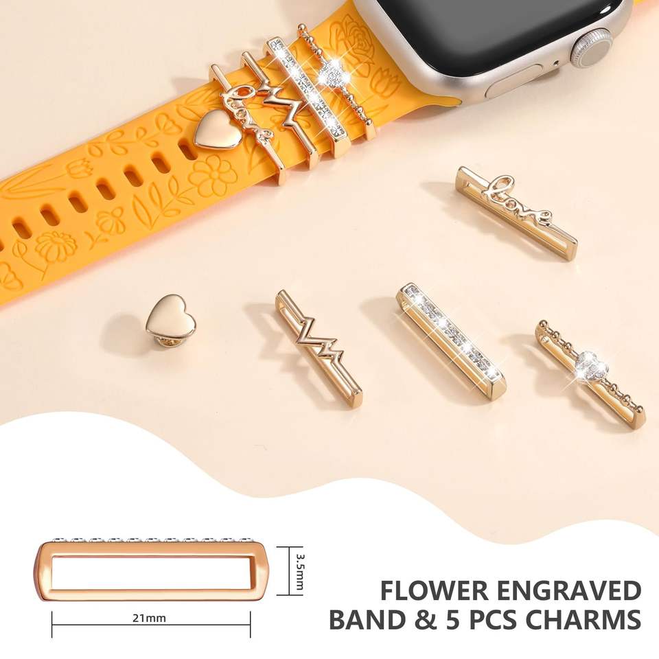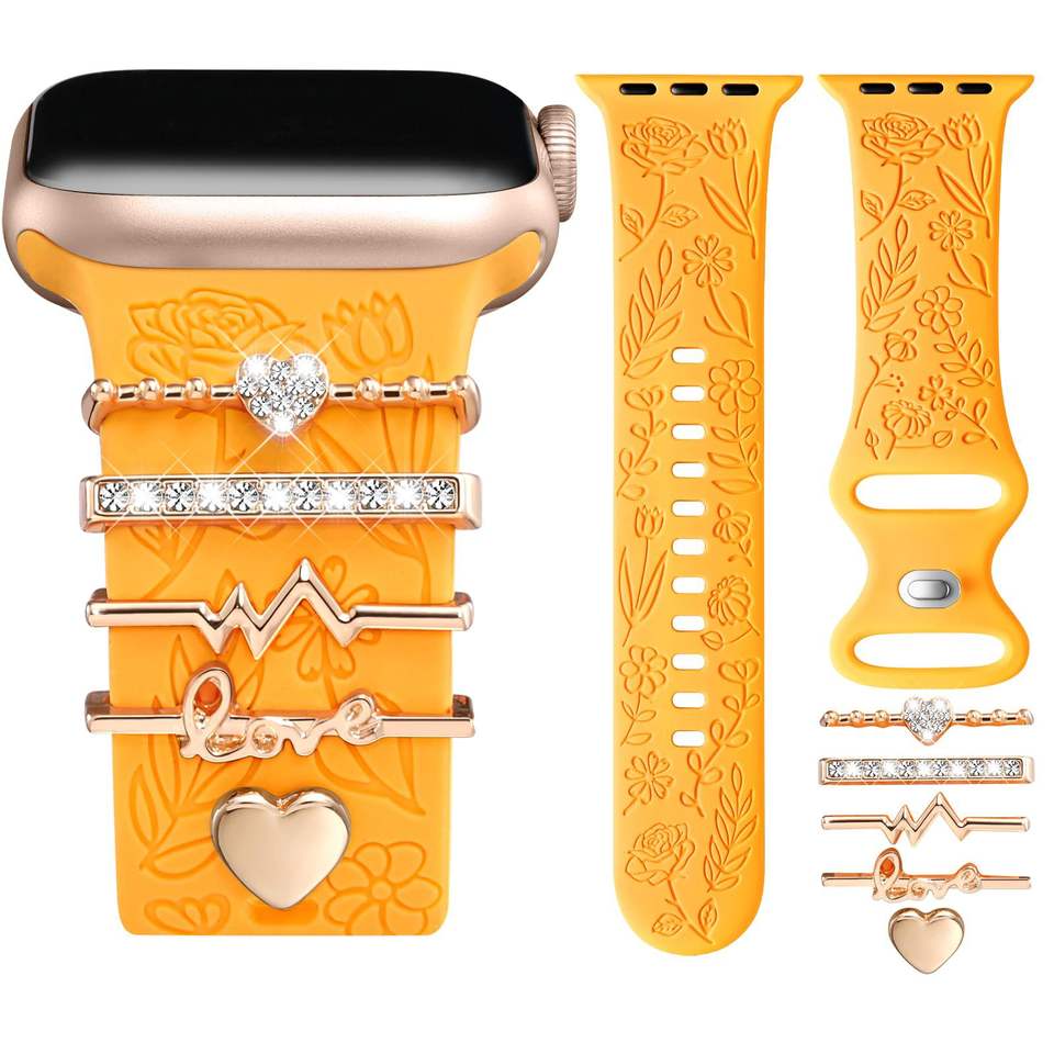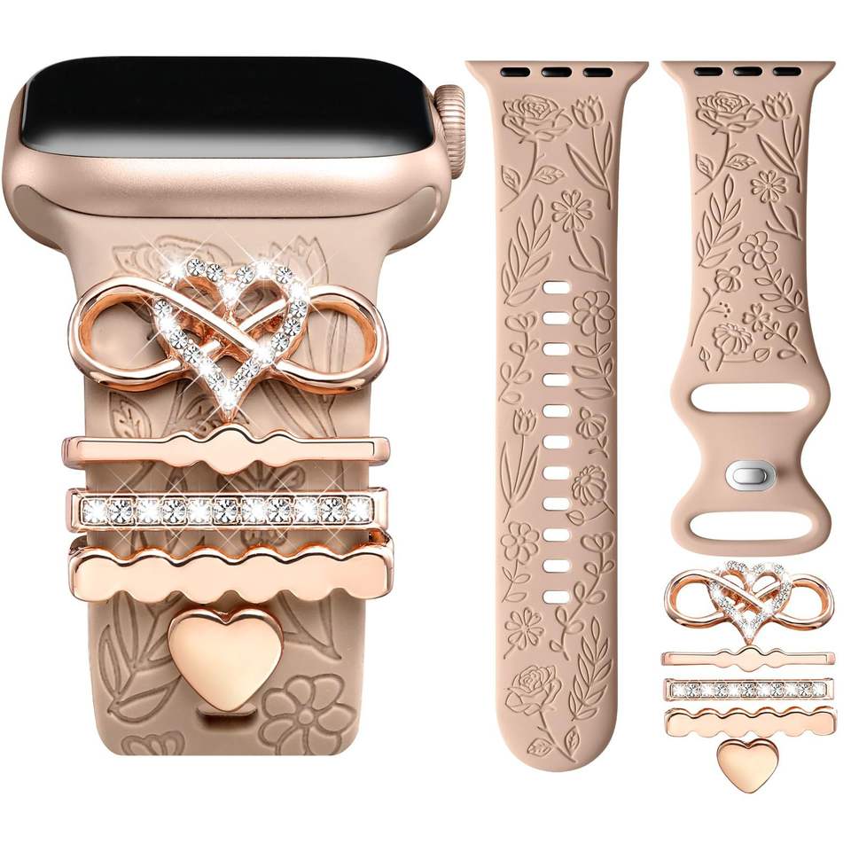 Upro Fashion Wholesale Heart Watch Strap Charms Pack for apple Silicone Watch Band Decorative Ring Set Watch band accessories