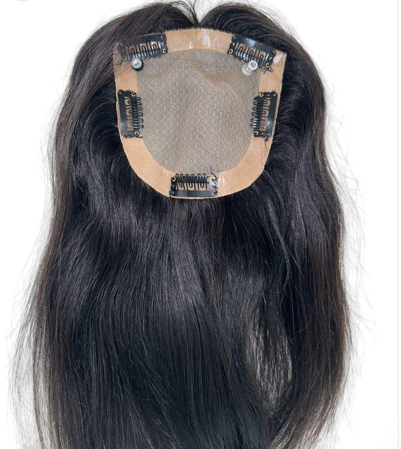 Silk Base Human Hair Topper With Clips in Silk Top Human Virgin Brazilian Hair Toupee for Women