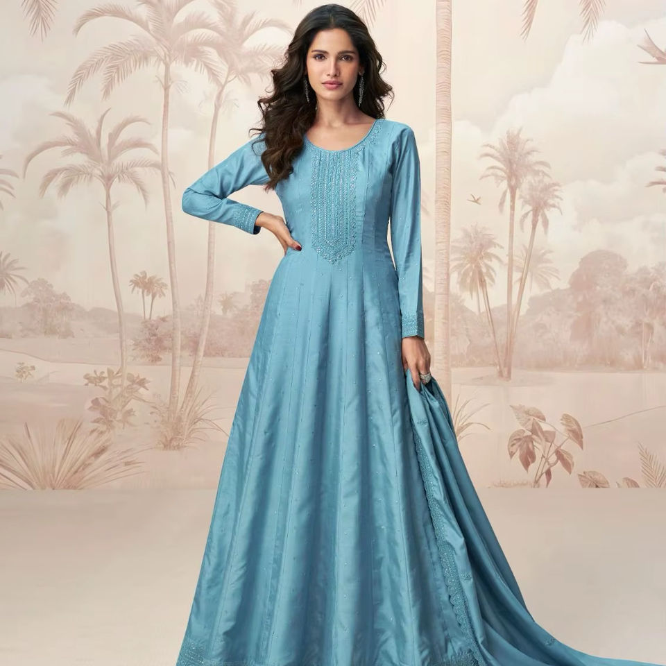 Silk Designer Gown With Dupatta Collection Full Catalog available at wholesale rate, Premium silk gown collection.