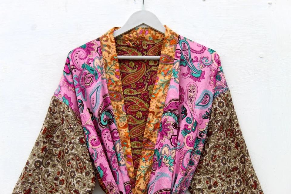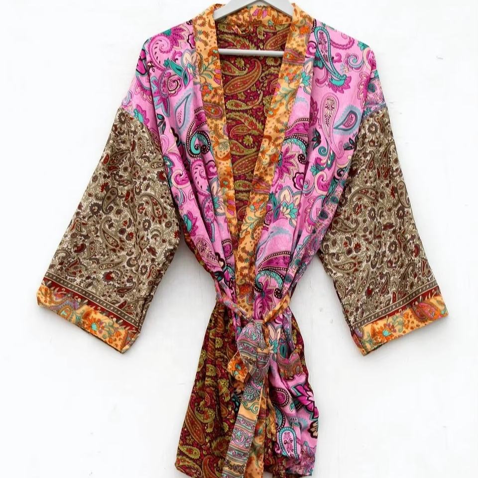 Vintage Chic Women's Poly Silk Robe Elegant Summer Kimono Jacket Chic Chiffon Style for Women