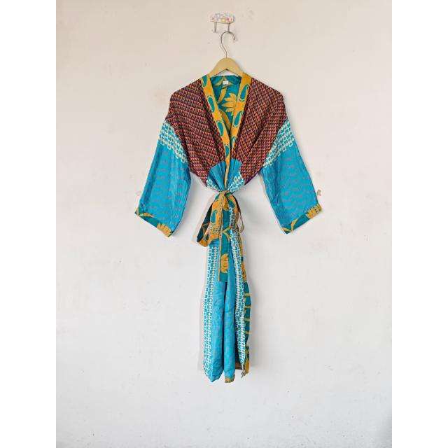 Silk Maternity Kimono Bikini Cover up Beach Wear Gown Sleepwear Indian Cover up Dressing Gown Sari Kimono Beach Wear With Belt