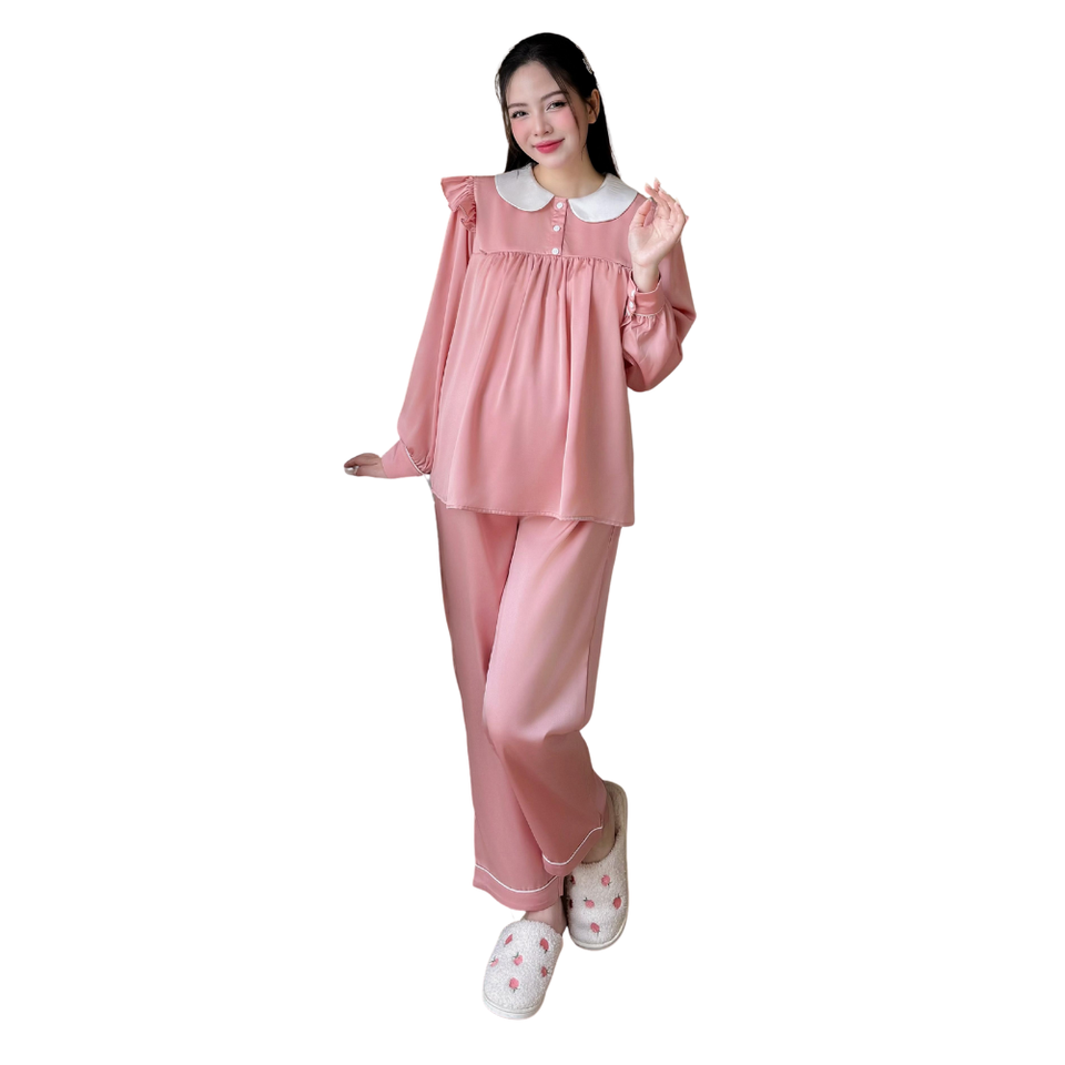 Silk Pants Elastic Button-Down Shirt Set B307 Breastfeed Lock Ruffle Shoulders Pregnancy Postpartum Casual Maternity Clothing