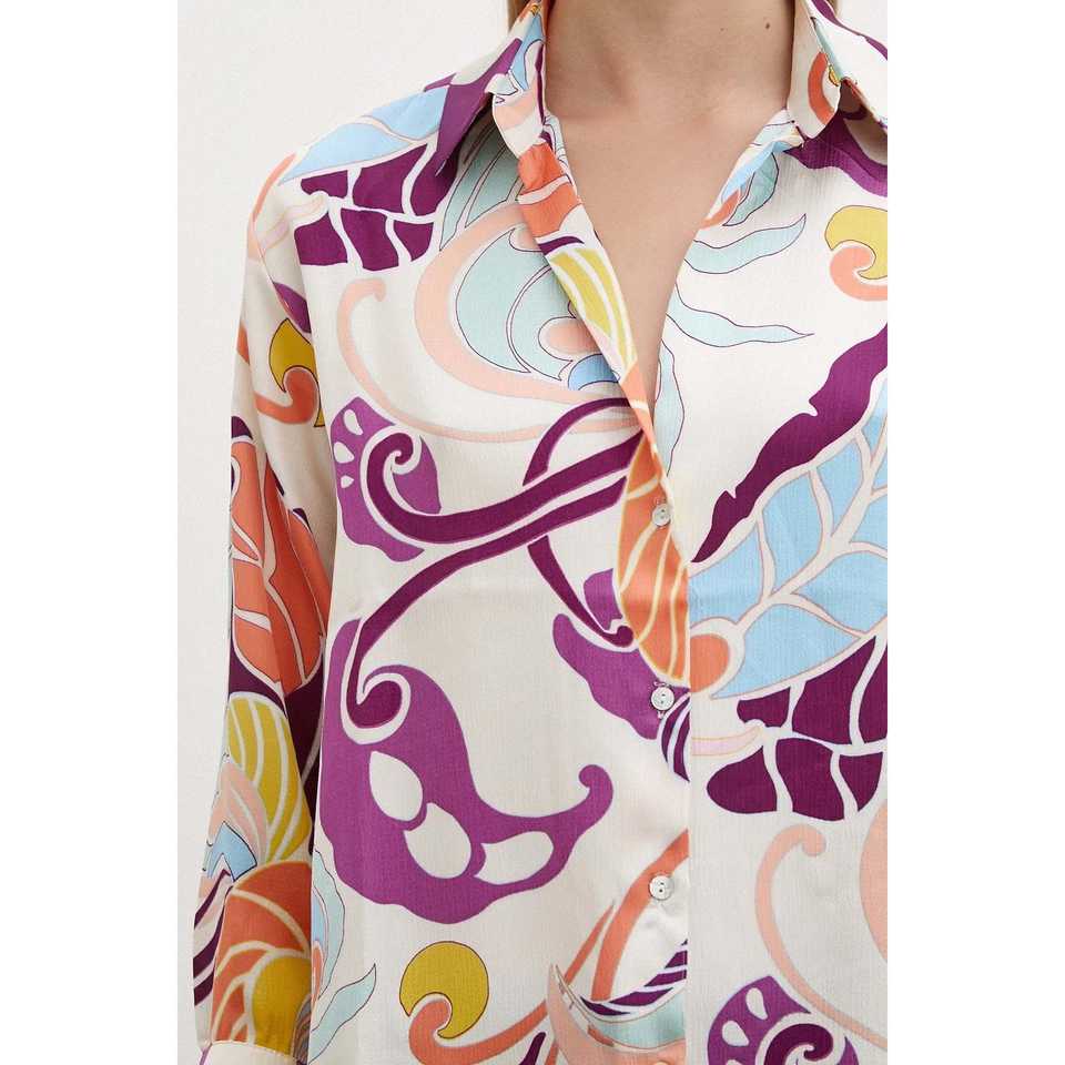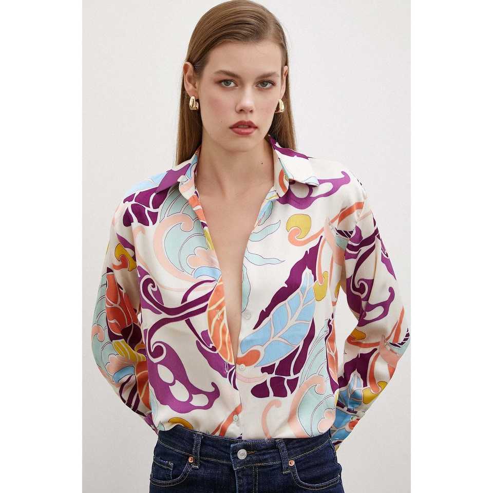Silk Pattern Shirt Women Casual Button Down Floral Print Satin Blouse Everyday Wear